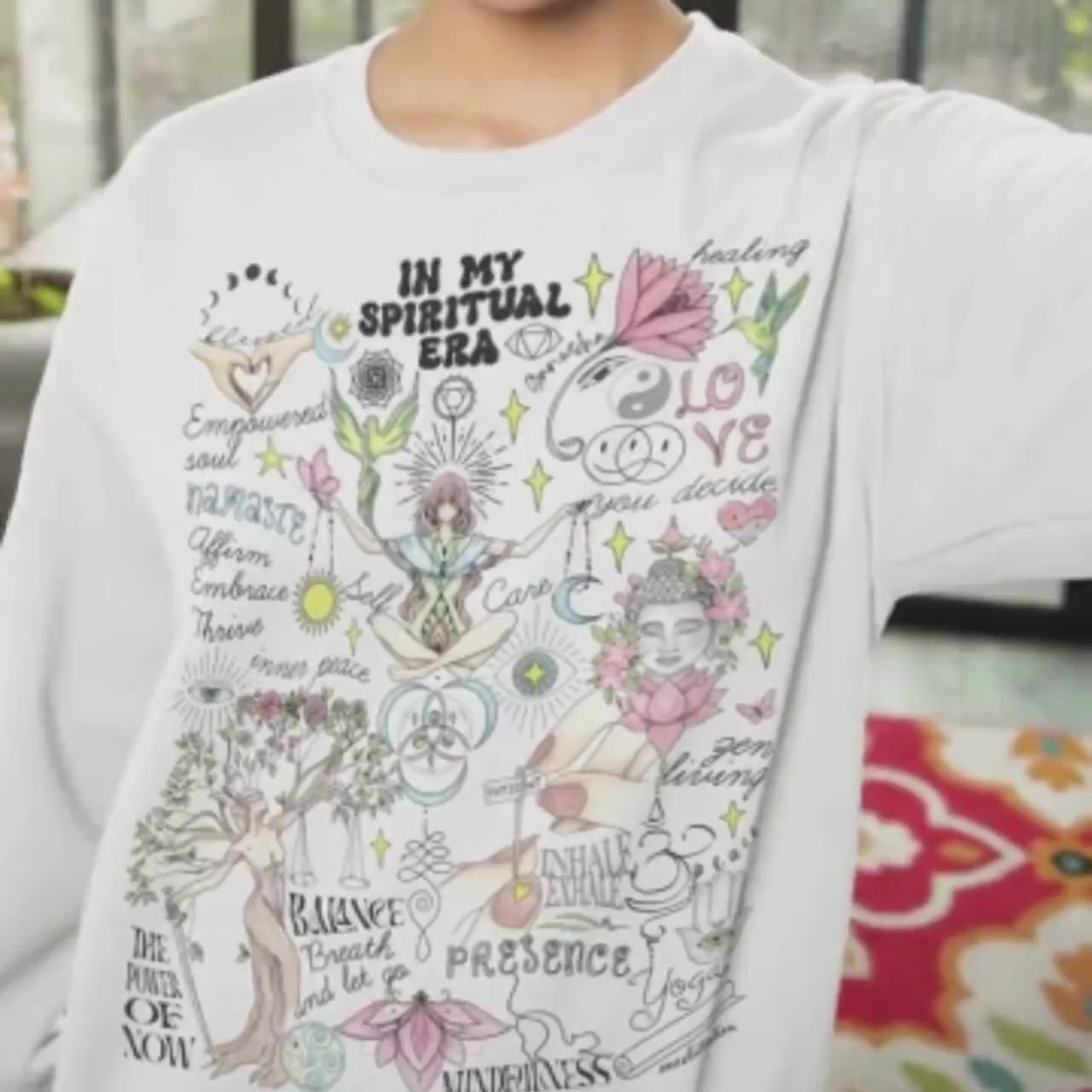 Cozy yoga meditation sweatshirt featuring spiritual affirmations, perfect for yoga lovers and teachers. A thoughtful self-care gift, ideal for birthdays, Christmas, or as a mental health boost for yoga instructors and enthusiasts.